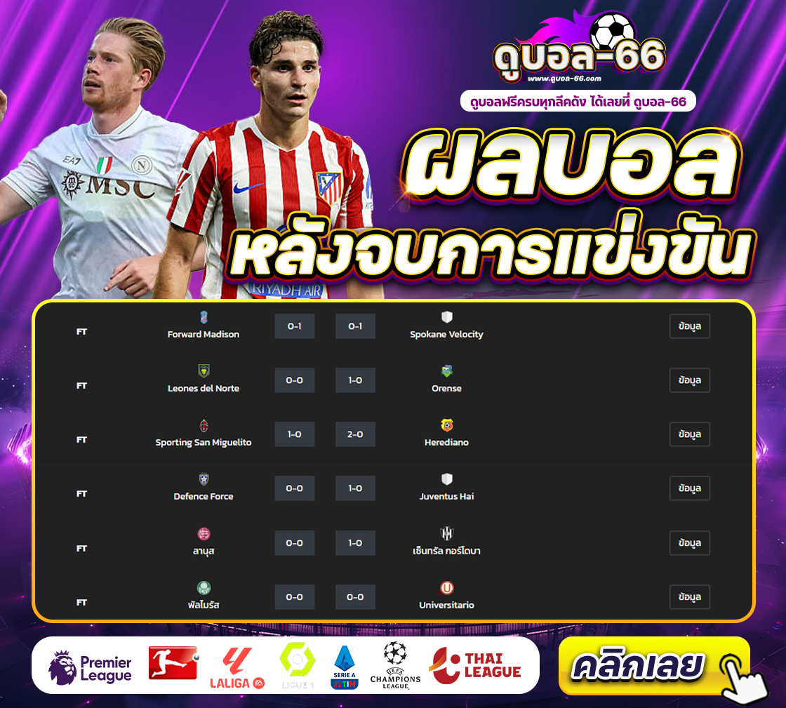 ผลบอล66 อัปเดตครบทุกคู่ รวม ผลบอลสด บ้านผลบอล และ ผลบอลวันนี้ แบบเรียลไทม์จากทุกลีกดัง พร้อมอัพเดตผลบอลล่าสุด ผลบอลย้อนหลัง และ ผลบอลสดภาษาไทย ที่เข้าใจง่ายและแม่นยำที่สุด ติดตามผลบอลพรีเมียร์ลีก ลาลีกา บุนเดสลีกา ลีกเอิง และทัวร์นาเมนต์ระดับโลกได้ทุกเวลา ที่นี่เรามี ผลบอล ครบถ้วนเพื่อแฟนบอลตัวจริงที่ต้องการข้อมูลแบบทันใจที่ ดูบอล-66.com